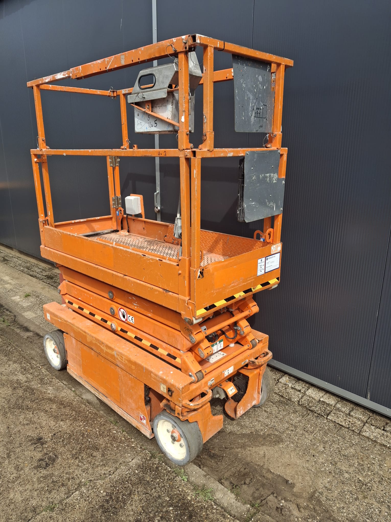 Aangeboden: Skyjack SJIII3219 schaarhoogwerker, van de eerste eigenaar, compleet met hoogwerkerboek, historie, geldige keuring en nieuwe accu's.